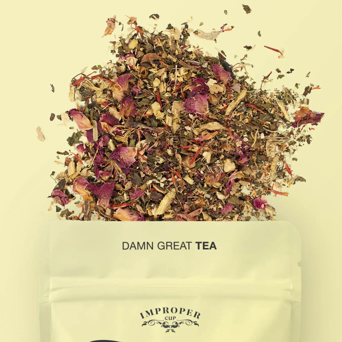 - Ingredients: Ginger, Licorice, Tulsi (Holy Basil), Dandelion leaves, Burdock root, Rose petals, Elder flowers, Safflower petals, Natural flavors (Organic Compliant)