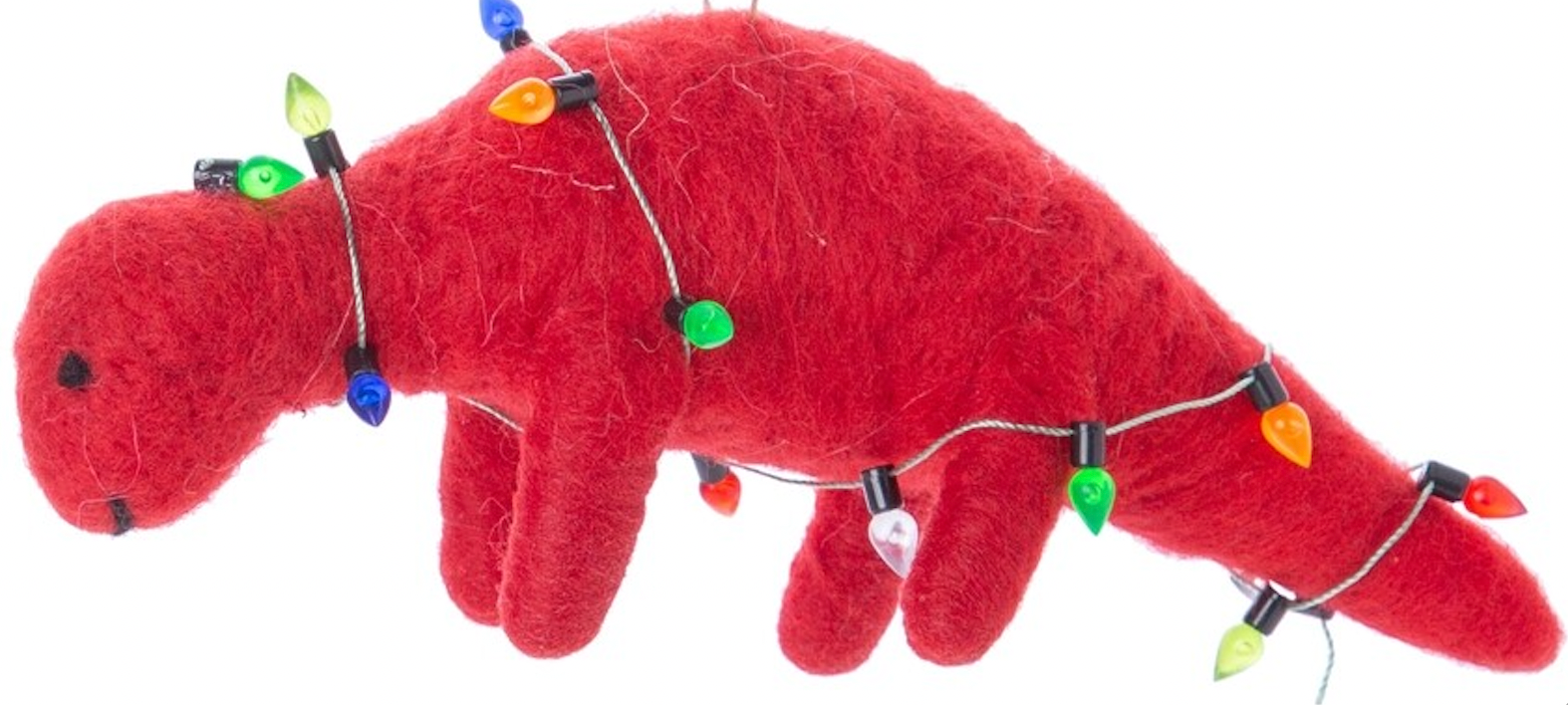 Felt dinosaur ornament with Christmas string lights, is sure to make everyone smile, they Dino is made from soft wool/polyester felt. Charming hung on a tree, on a wine bottle or holiday package. This will make a easy and memorable gift for anyone on your list.