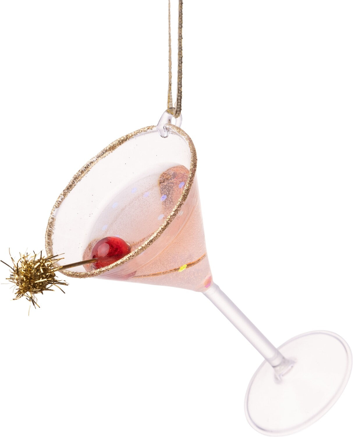 Get ready to get tipsy with this funky pink martini glass Christmas ornament with a touch of gold!