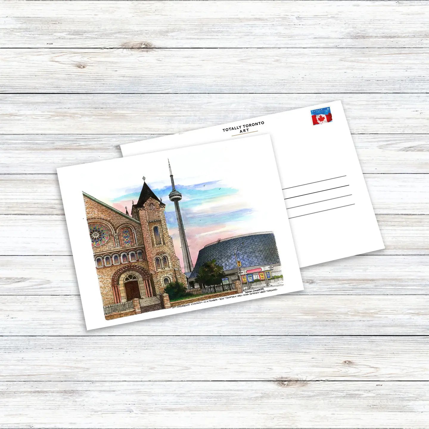 This is a charming postcard of St. Andrews Chuch and Roy Thomson Hall.