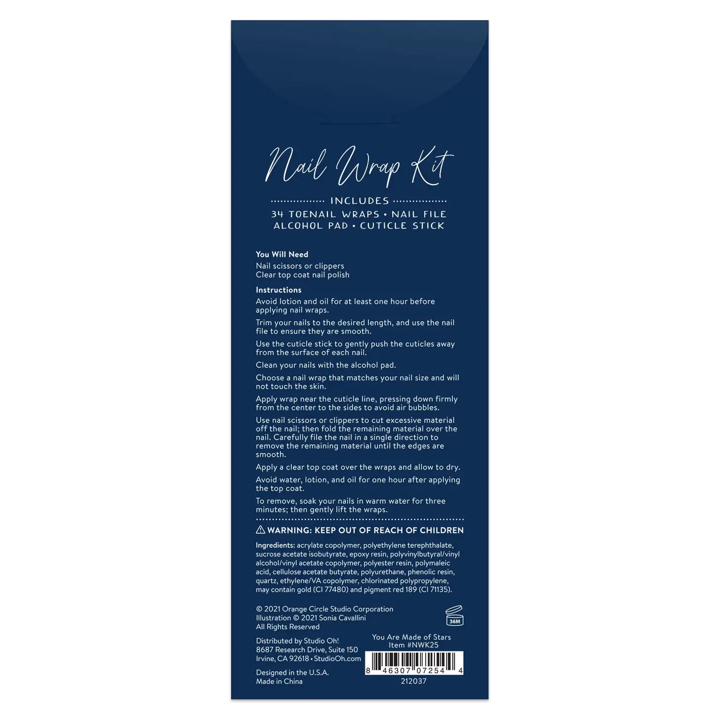 - 34 toenail wraps, nail file, alcohol pad, and cuticle stick in each kit