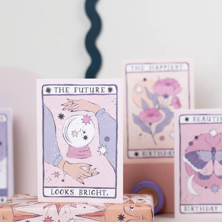 This fun and quirky card, inspired by Tarot, will make any occasion shine like a crystal ball. With stars and hands of a fortune-teller, it's perfect for congratulating or celebrating a birthday.