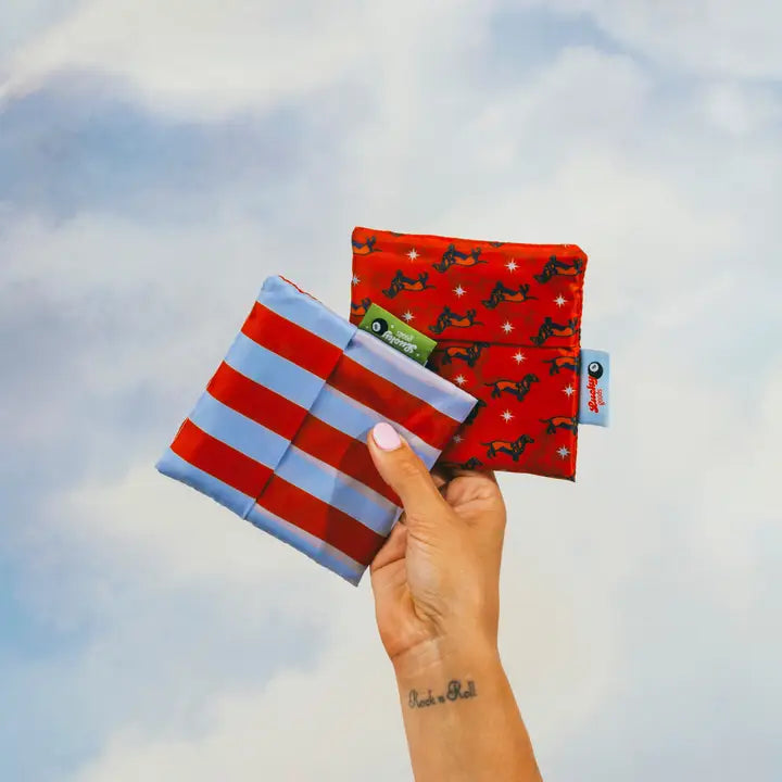 Bold, nostalgic, and built for everyday errands. This lightweight nylon tote folds flat for easy storage—perfect for tossing in your bag or back pocket.