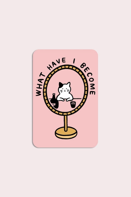 Featuring a curious feline peering into a vanity mirror, this sticker adds a playful touch to your belongings. A must-have for any cat lover, this sticker is the perfect way to personalize your items.