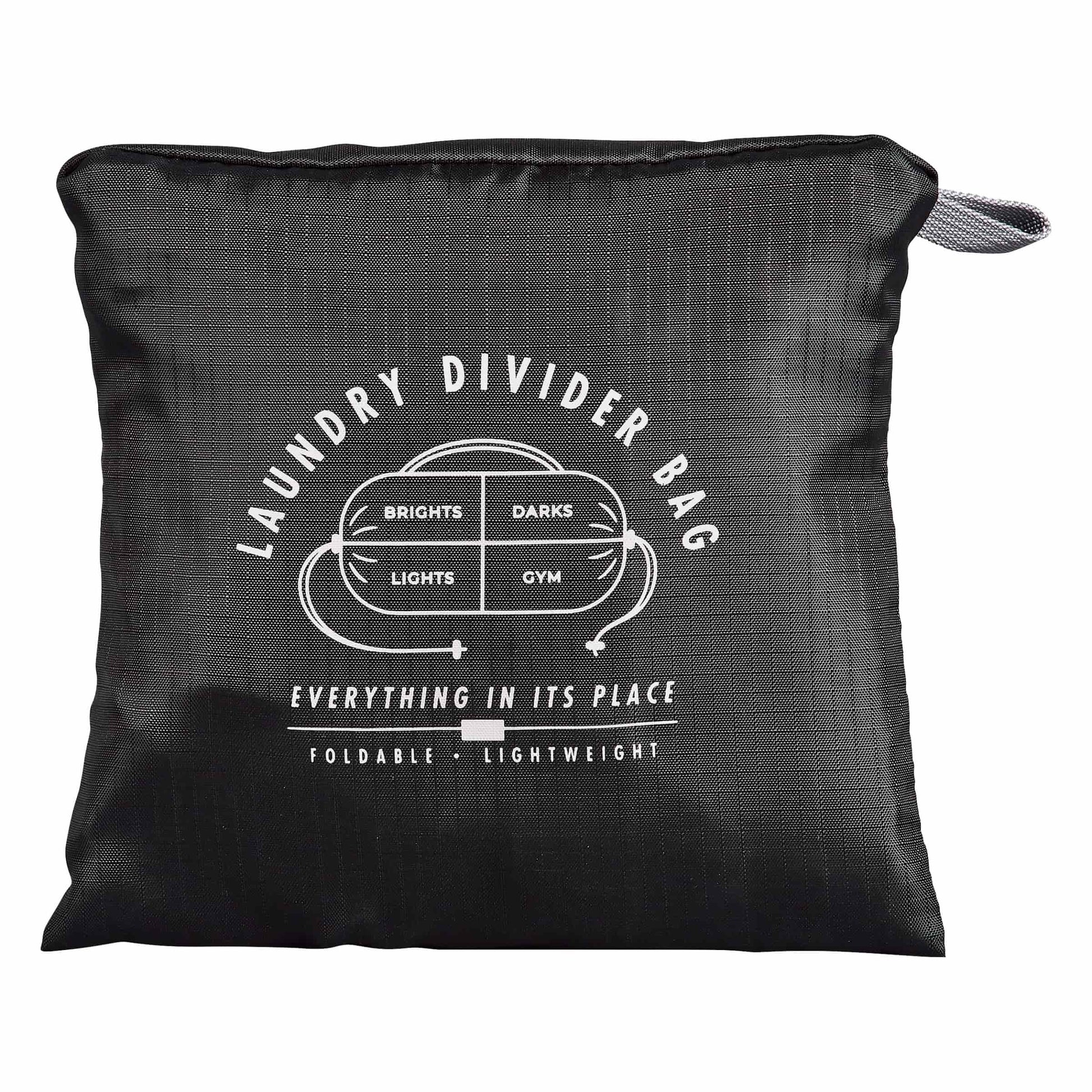 4 individual and separate compartments divided by darks, lights, brights and gym clothes - 100% nylon polyester fabrication.