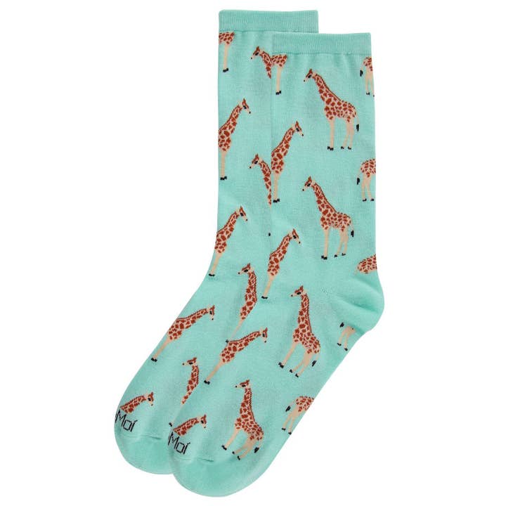 Women's Bamboo Crew Socks Seafoam Giraffes