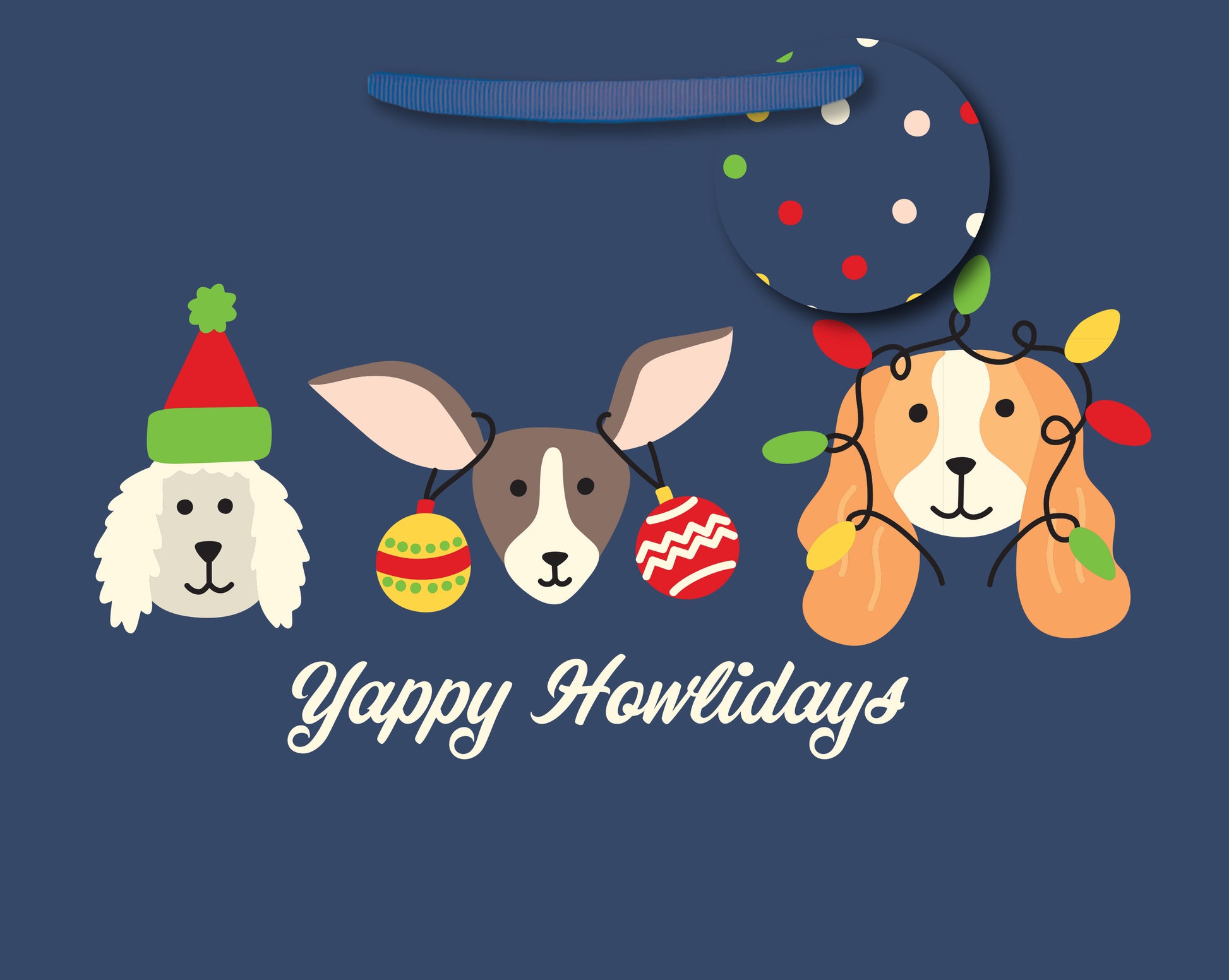Share holiday joy with this medium gift bag featuring festive pups and the fun message “Yappy Howlidays.” It has shiny silver handles and a colourful tag, making it perfect for dog lovers and festive gift-giving.