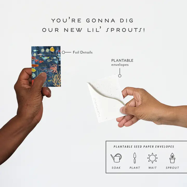 - Foil details and a PLANTABLE seed paper envelope which is embedded with wildflower seeds.