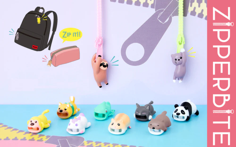Zipper Bites are the newest addition to the Cable Bite family! Adorable animal companions that "bite" onto your zipper to decorate jackets, backpacks, pencil case, purse, bags, and more!